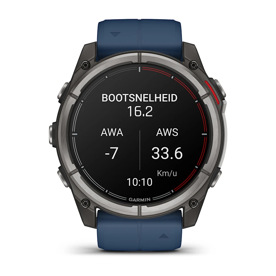 ¿Busca el reloj de vela o smartwatch definitivo para los deportes acuáticos? El Garmin Quatix 8 es la mejor opción para navegantes, buceadores y aventureros en el agua. Este resistente y elegante reloj pone al alcance de tu mano funciones de navegación, control de la embarcación y deportes en todo momento.